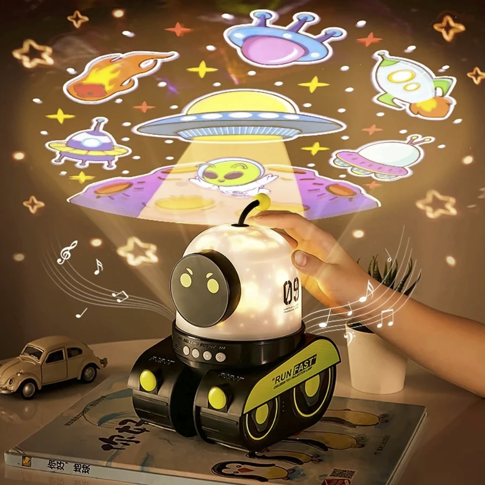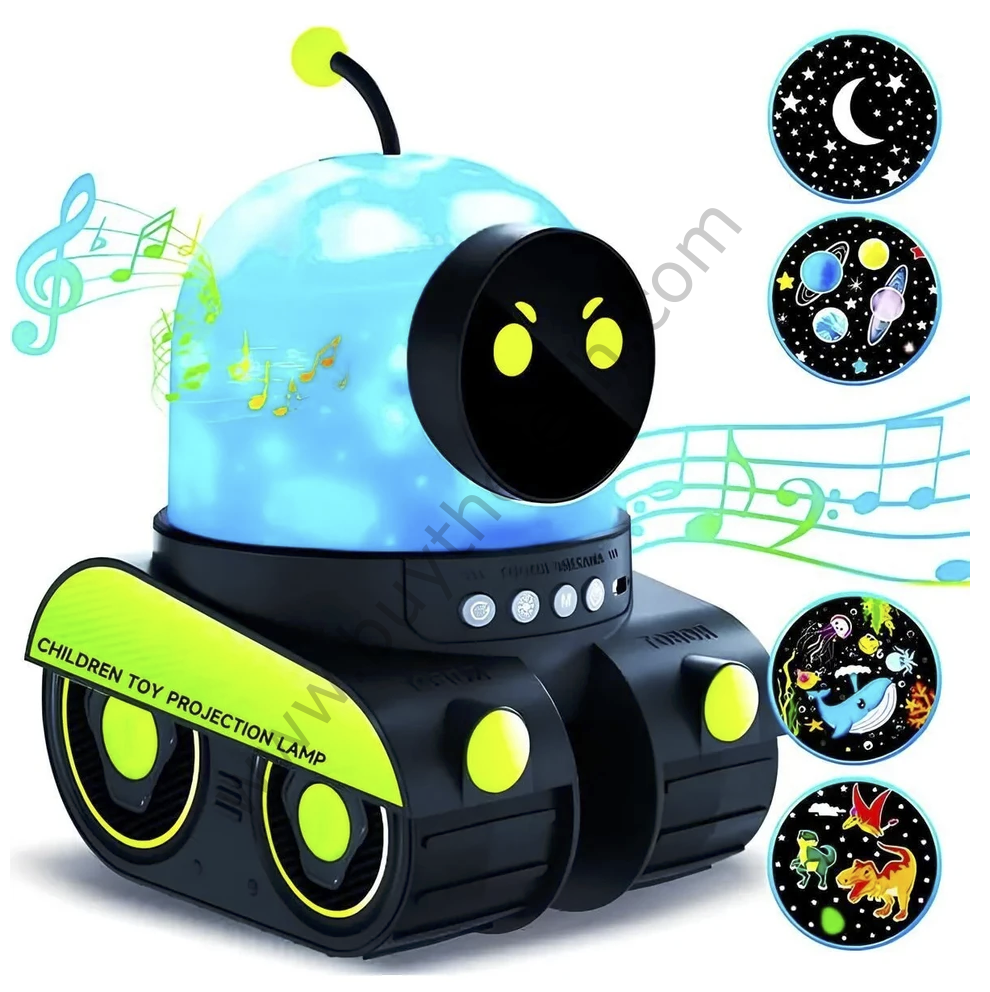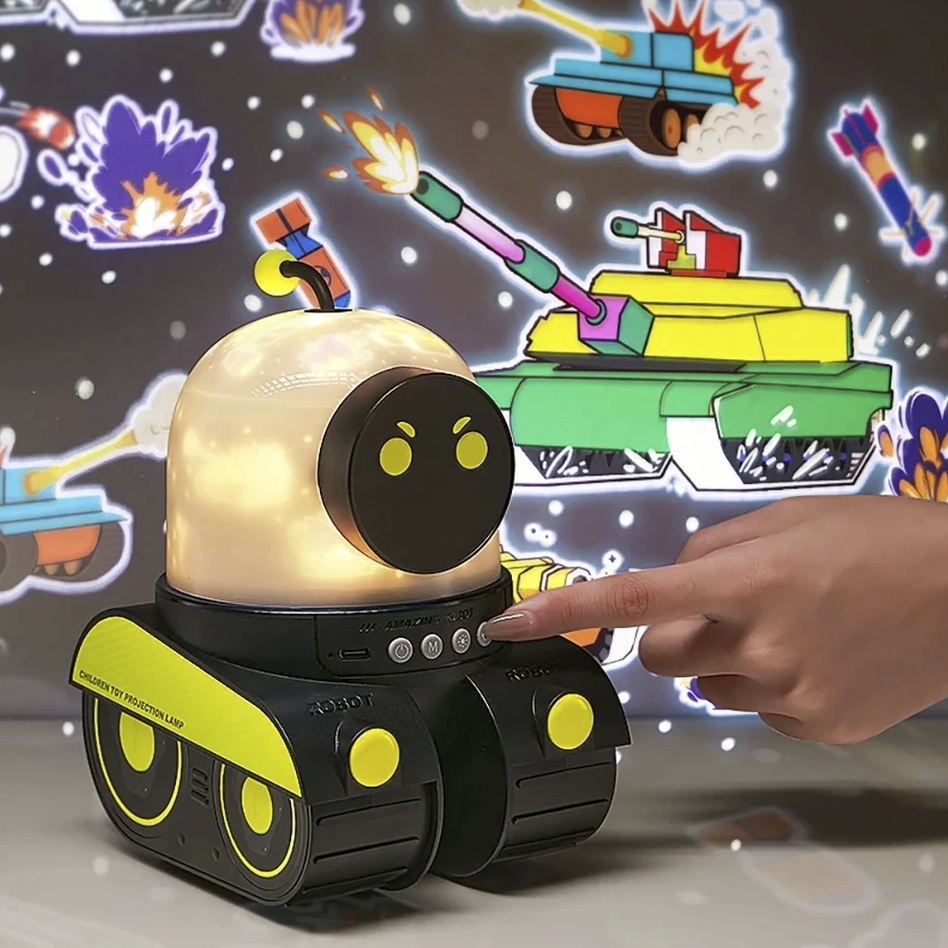 Tank Projektör, çocukların hayal dünyasını geliştirmeyi ve uyku öncesi ritüellerini eğlenceli bir deneyime dönüştürmeyi hedefleyen özel bir teknolojik oyuncaktır. Sevimli robot teması, döner başlığı, LED projektör özelliği ve müzik sistemi ile hem eğitici hem de eğlenceli bir ortam yaratır. Bu çok yönlü gece lambası, çocuk odalarına şıklık katarken aynı zamanda görsel, işitsel ve duygusal uyaranlarla çocukların gelişimini destekler.
