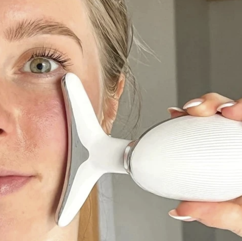 -Cilt sıkılaştırma aleti, yüz kaslarını uyararak cildin elastikiyetini artırır. Bu sayede, cilt daha sıkı ve genç görünür.